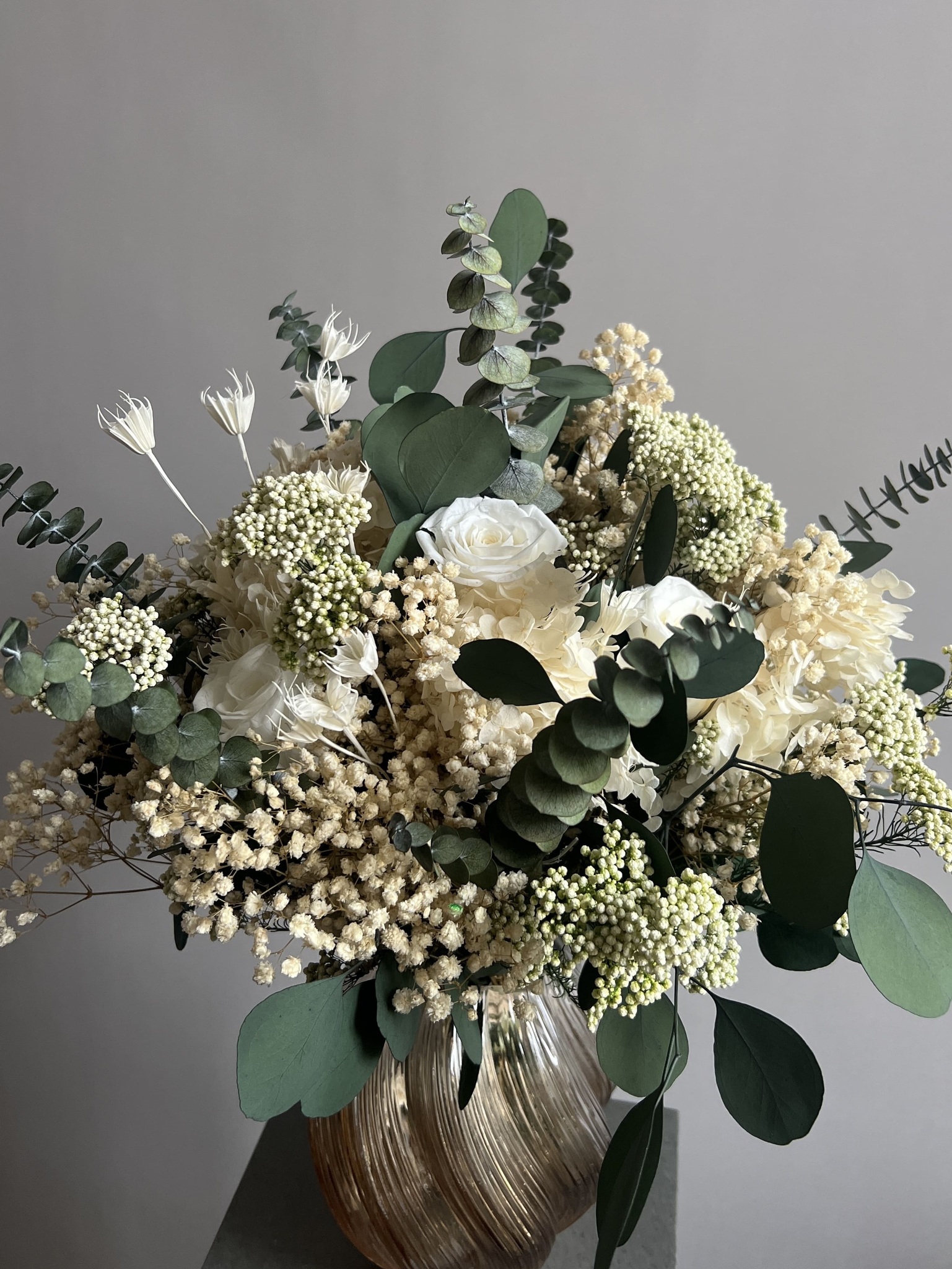 Раскидистый букет из сухоцветов и стабилизированных цветов