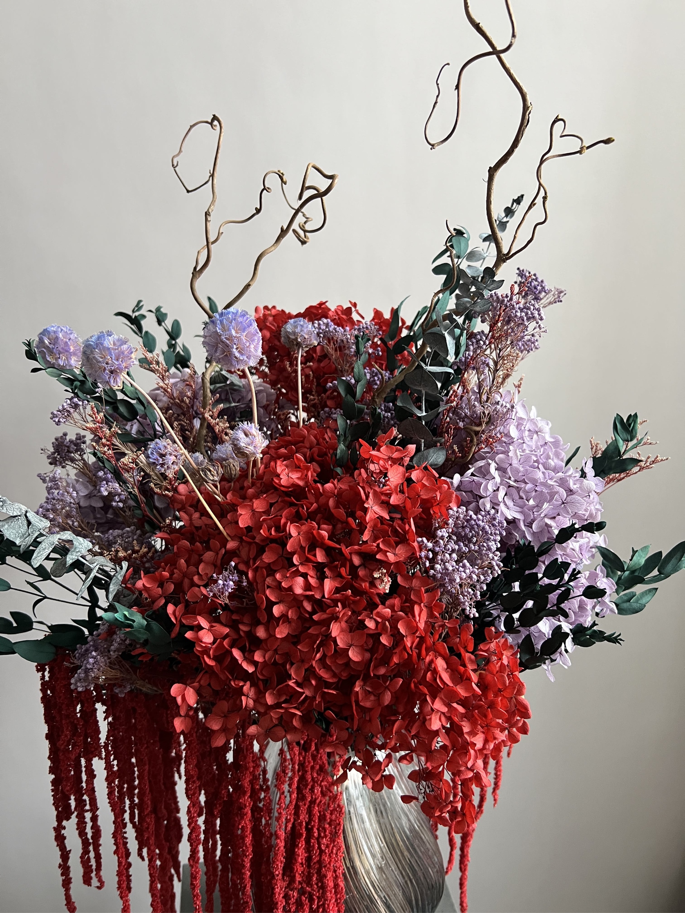 Раскидистый букет из сухоцветов который будет радовать получателя на протяжении нескольких лет. Возможен повтор в любой цветовой гамме