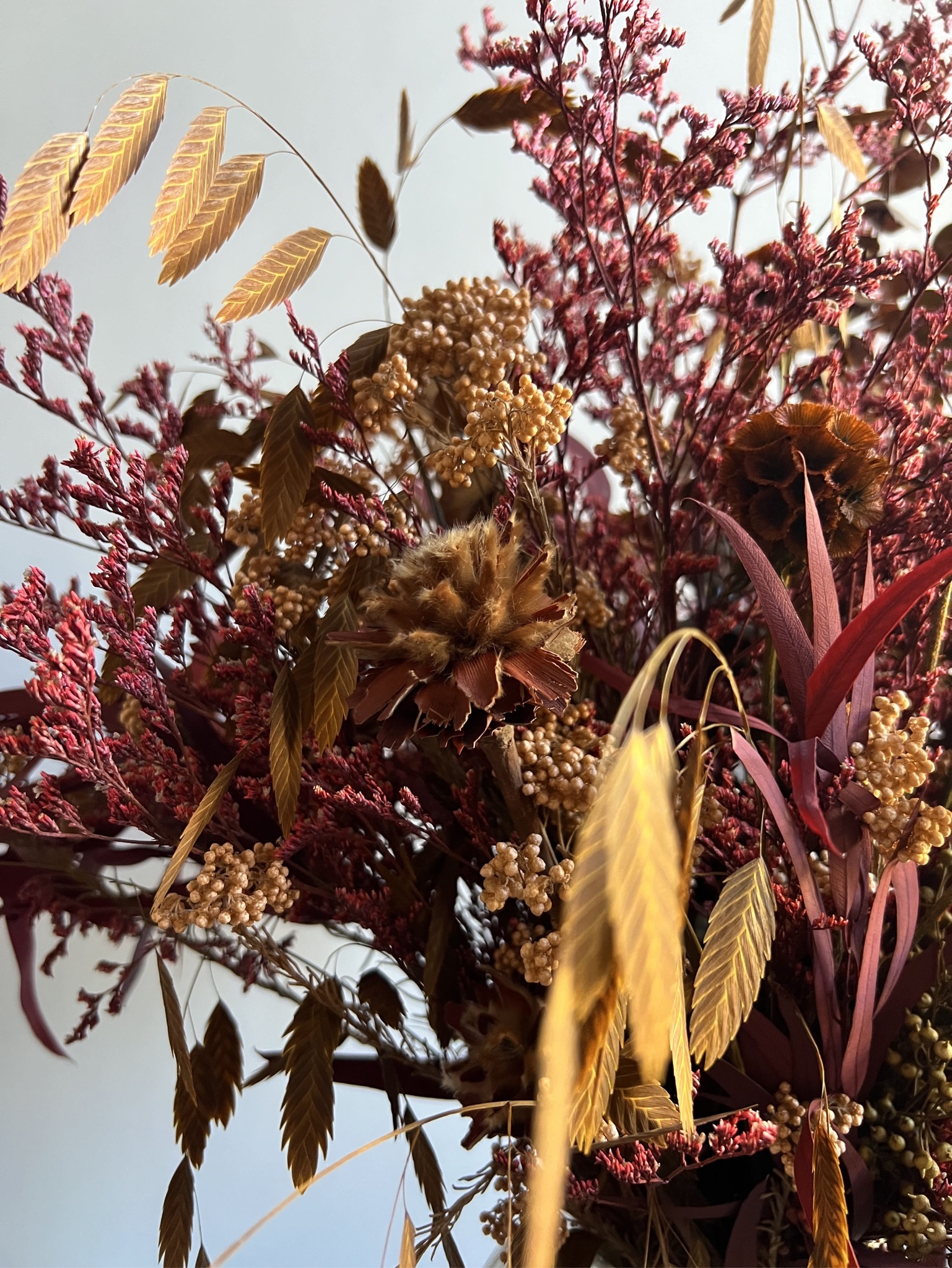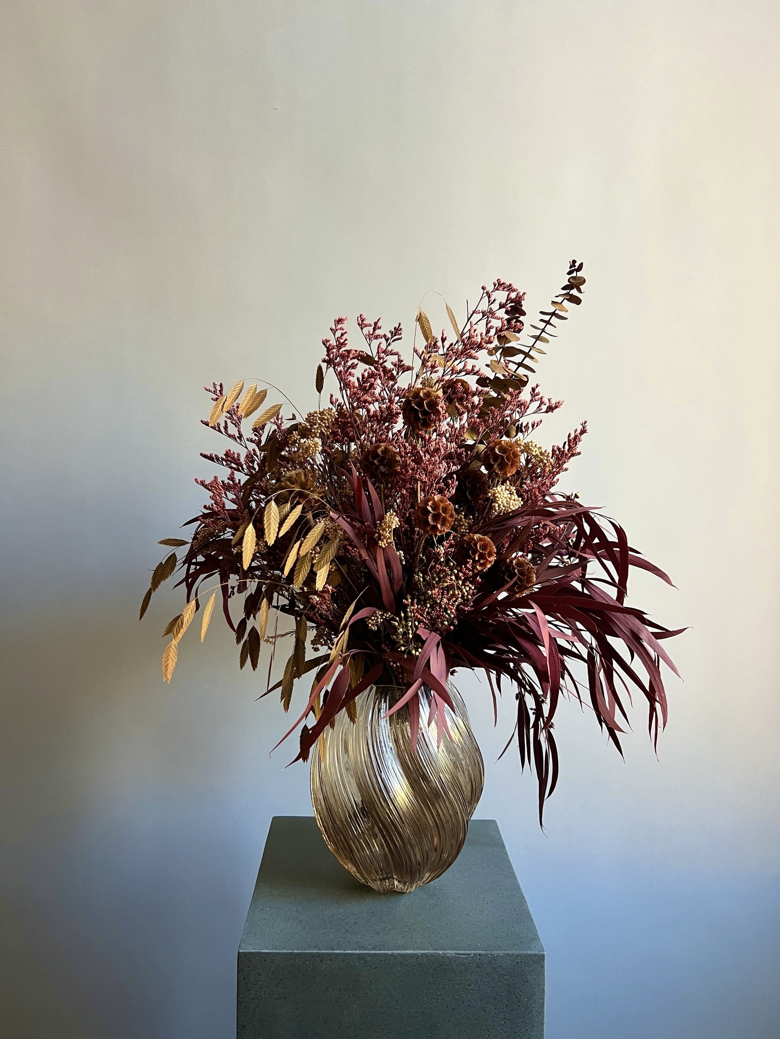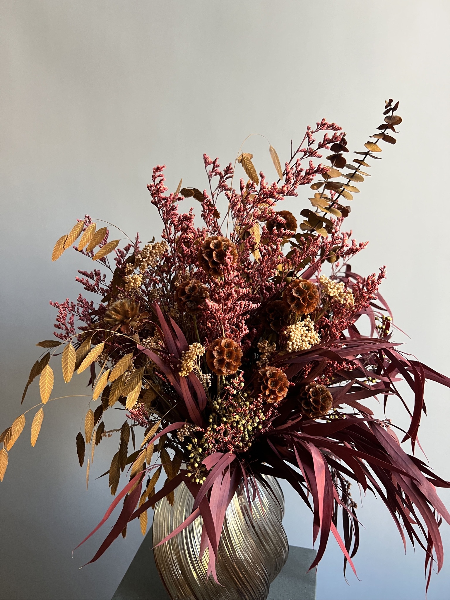 Раскидистый букет из сухоцветов и стабилизированных цветов