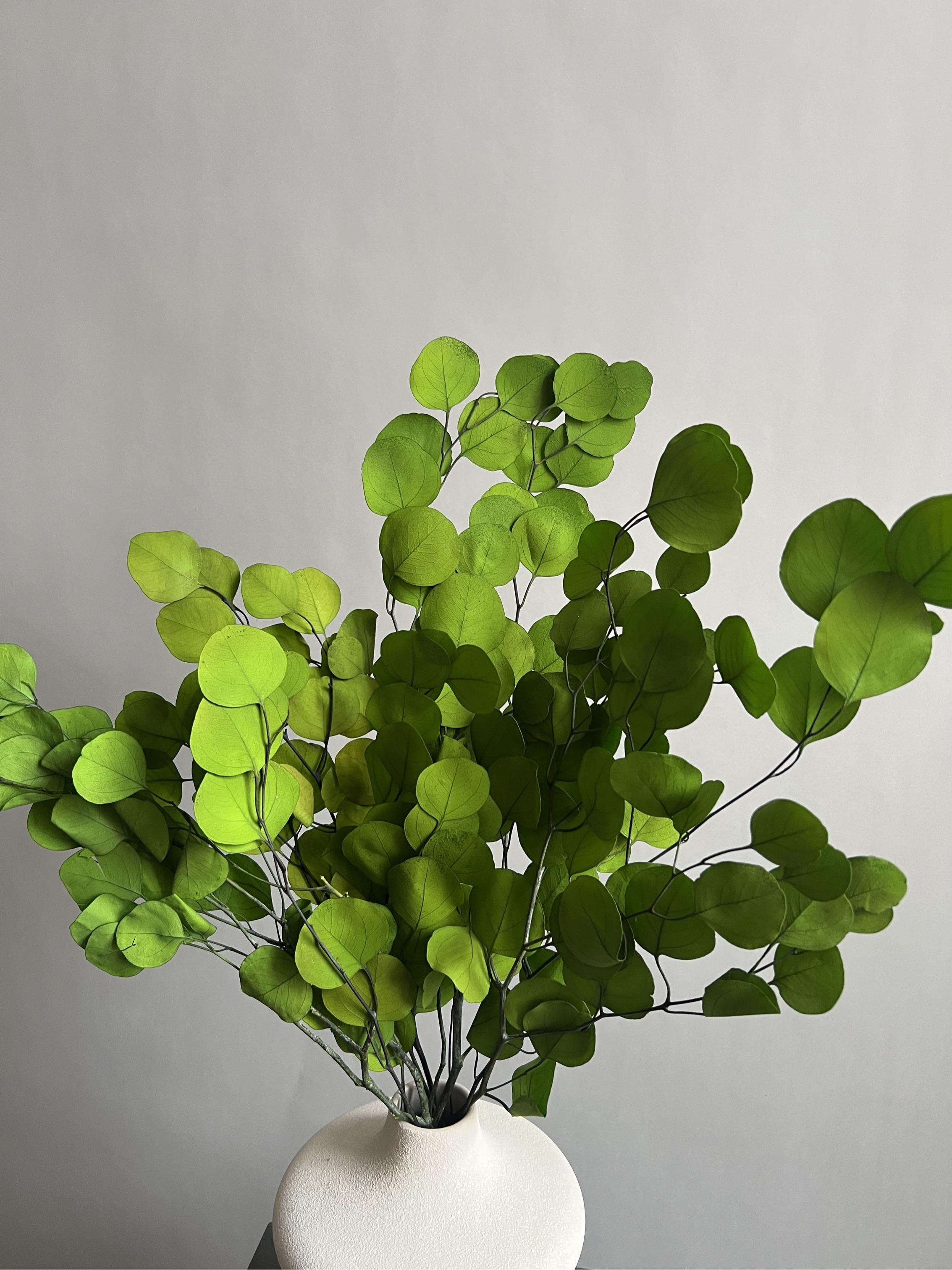 Стабилизированные растения – это свежие растения, которые пропитываются специальным раствором на основе глицерина, что обеспечивает их долговечность – от 3 лет жизни. В результате этого цветы сохраняют свежесть и эластичность. Стабилизированный эвкалипт станет прекрасным украшением любого интерьера, листья обладают натуральным ароматом характерным для эвкалипта