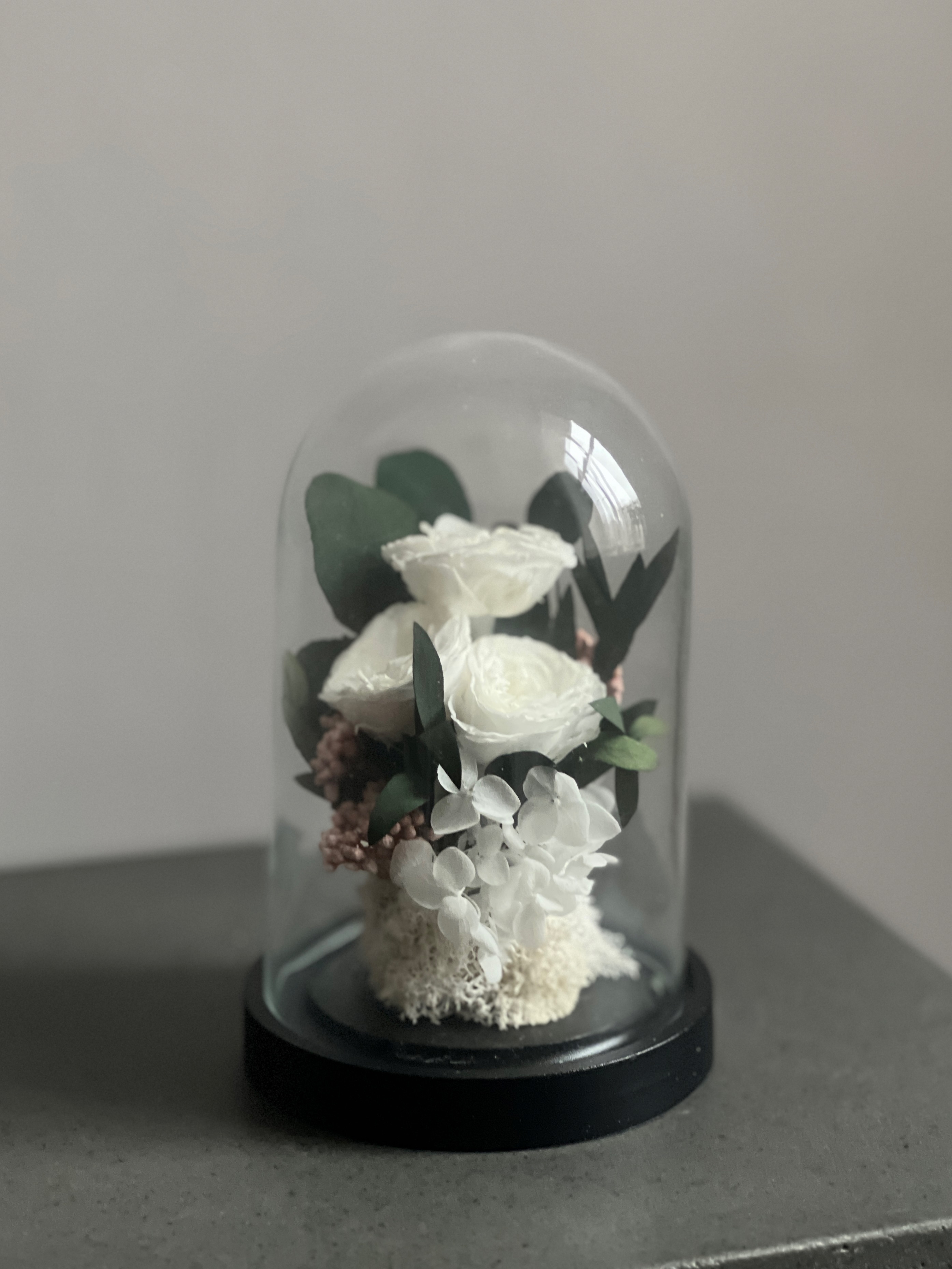 Состав: роза стабилизированная, гортензия стабилизированная, озотамнус, эвкалипт, мох
