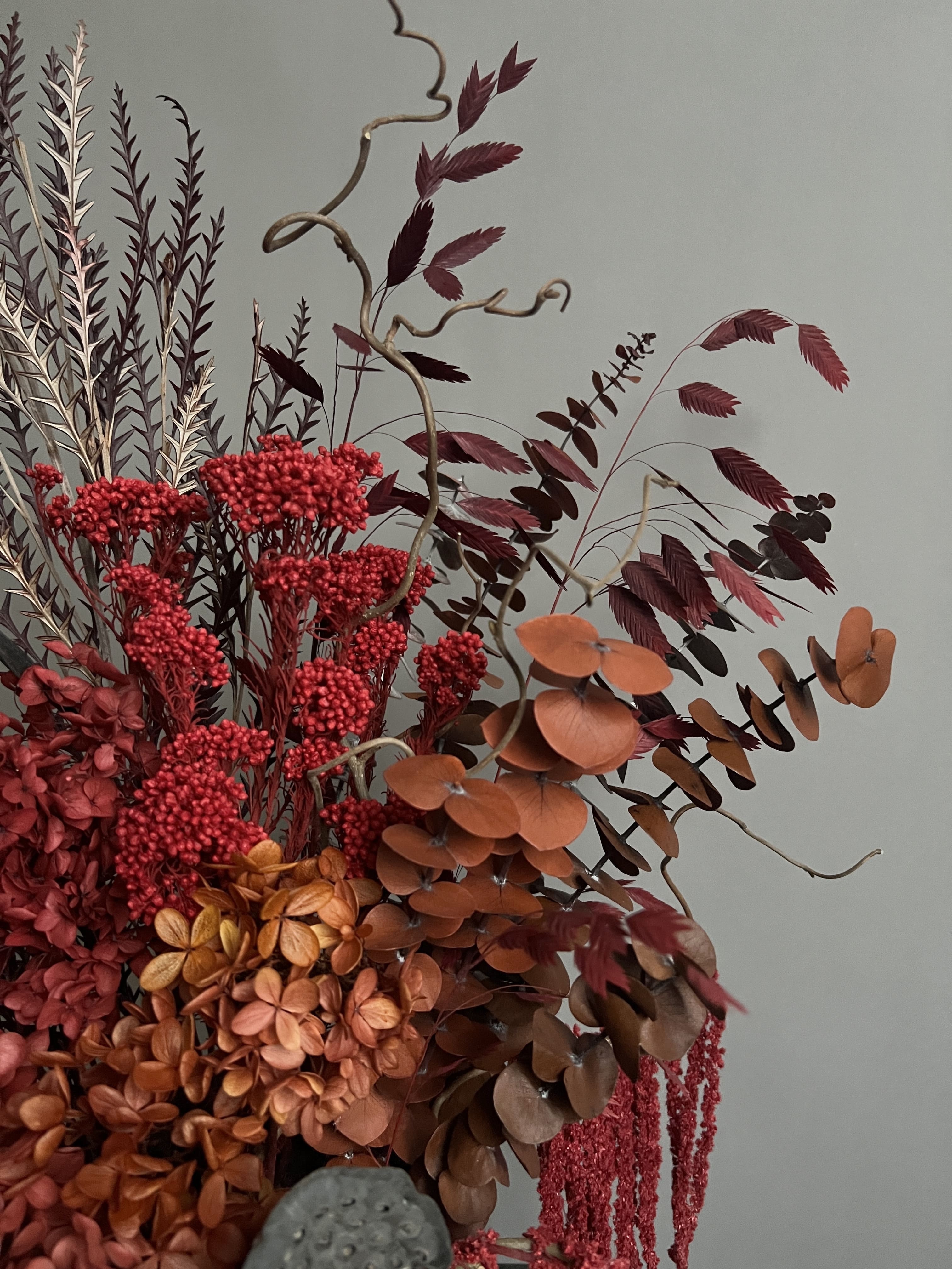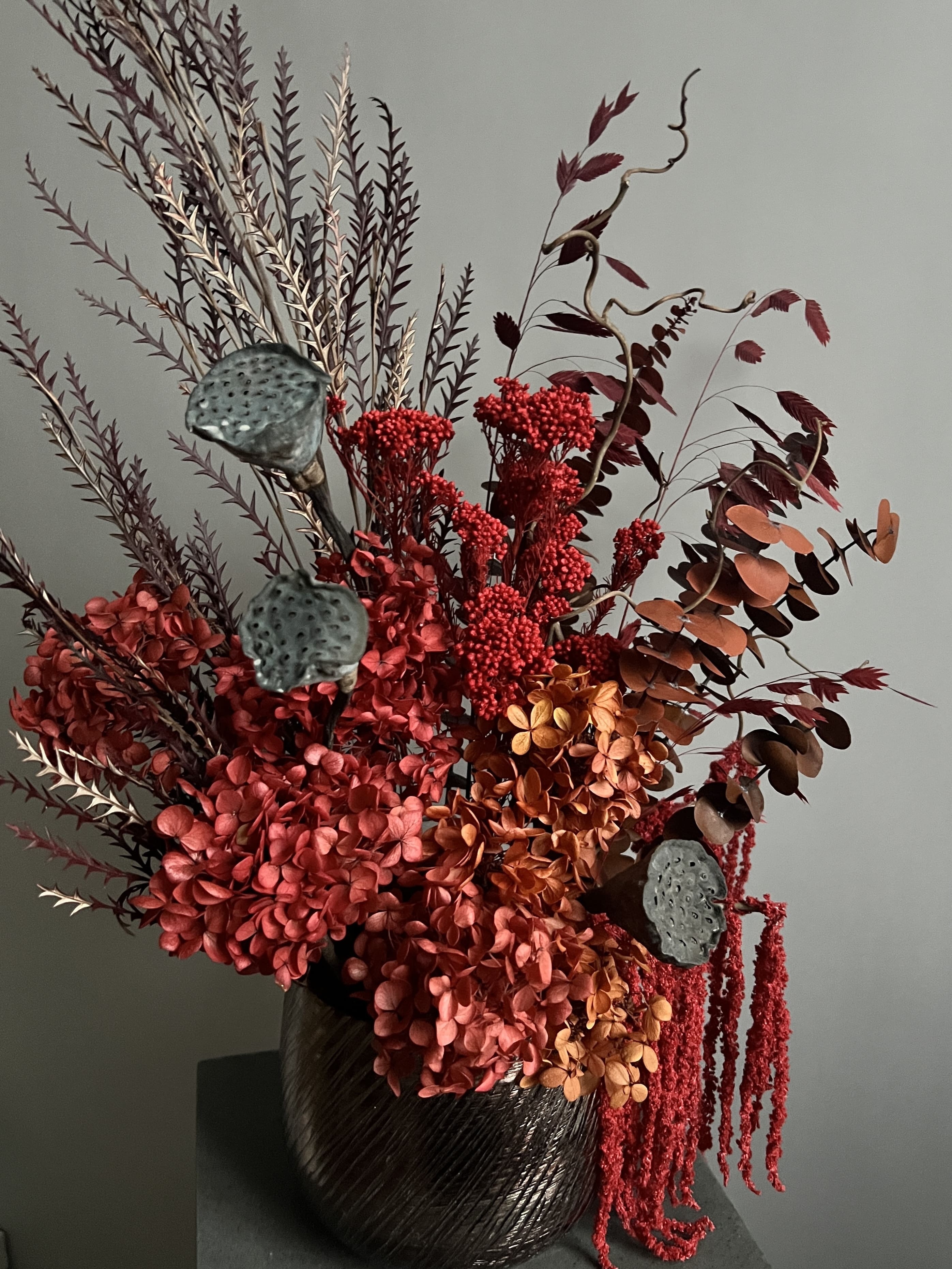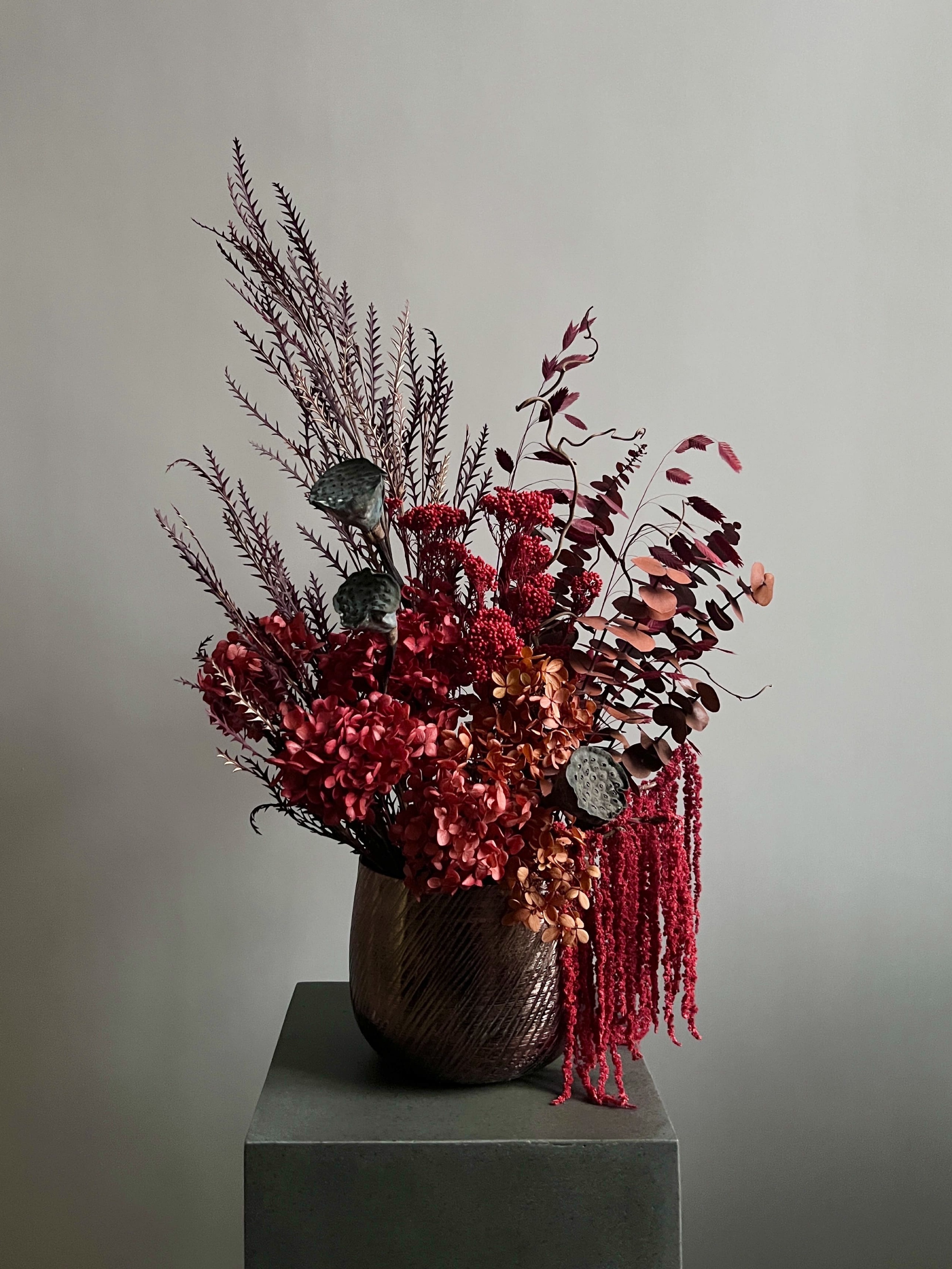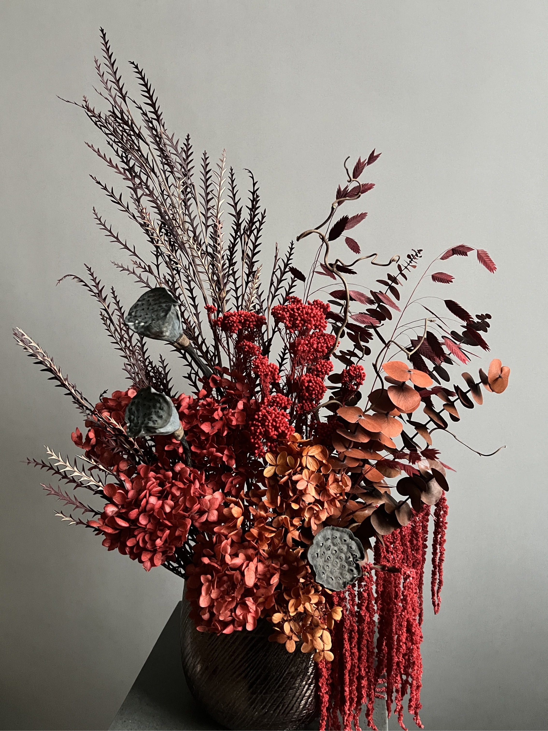 Стильная интерьерная композиция из сухоцветов и стабилизированных цветов