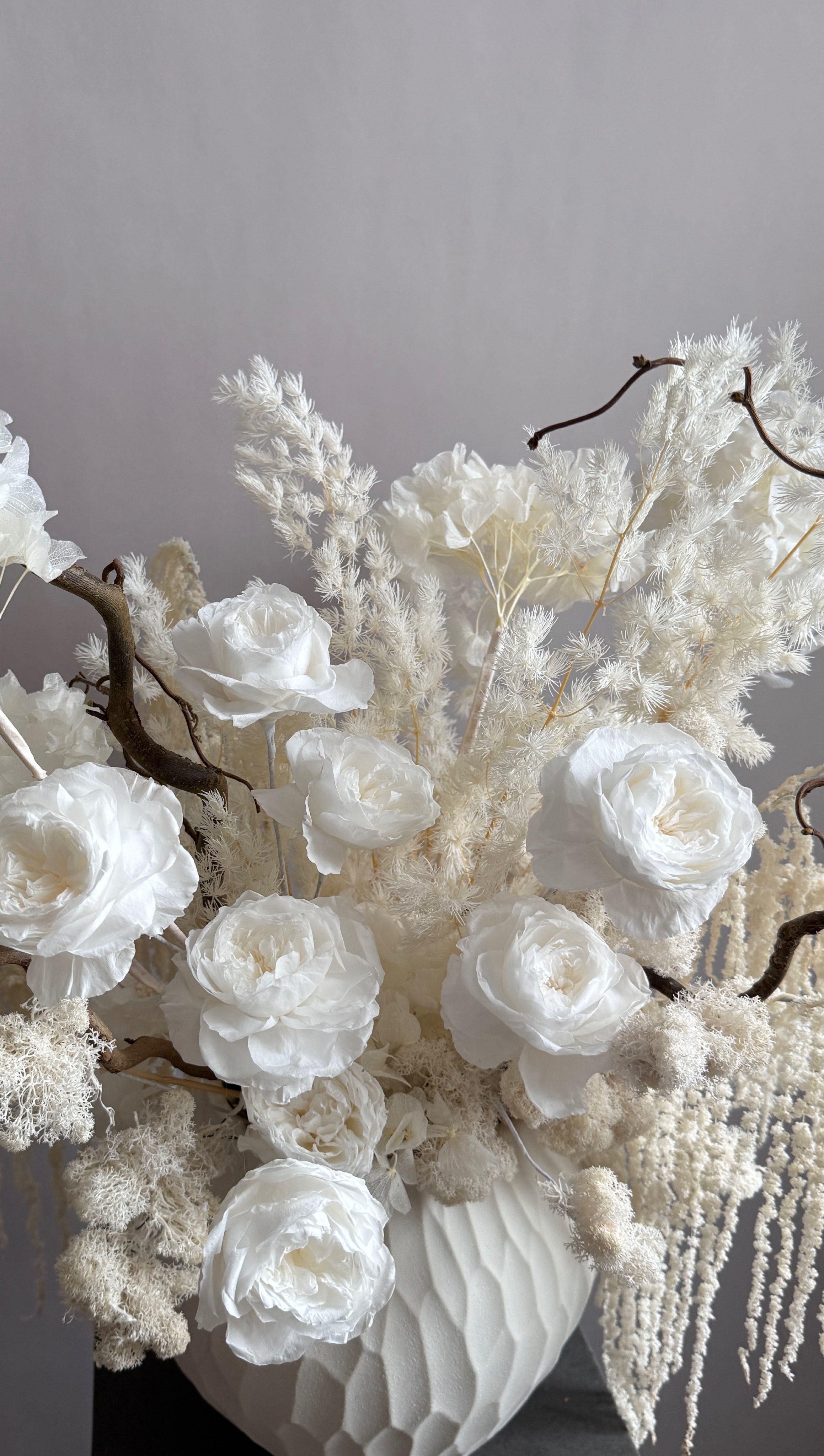 Интерьерная композиция выполнена из стабилизированных цветов