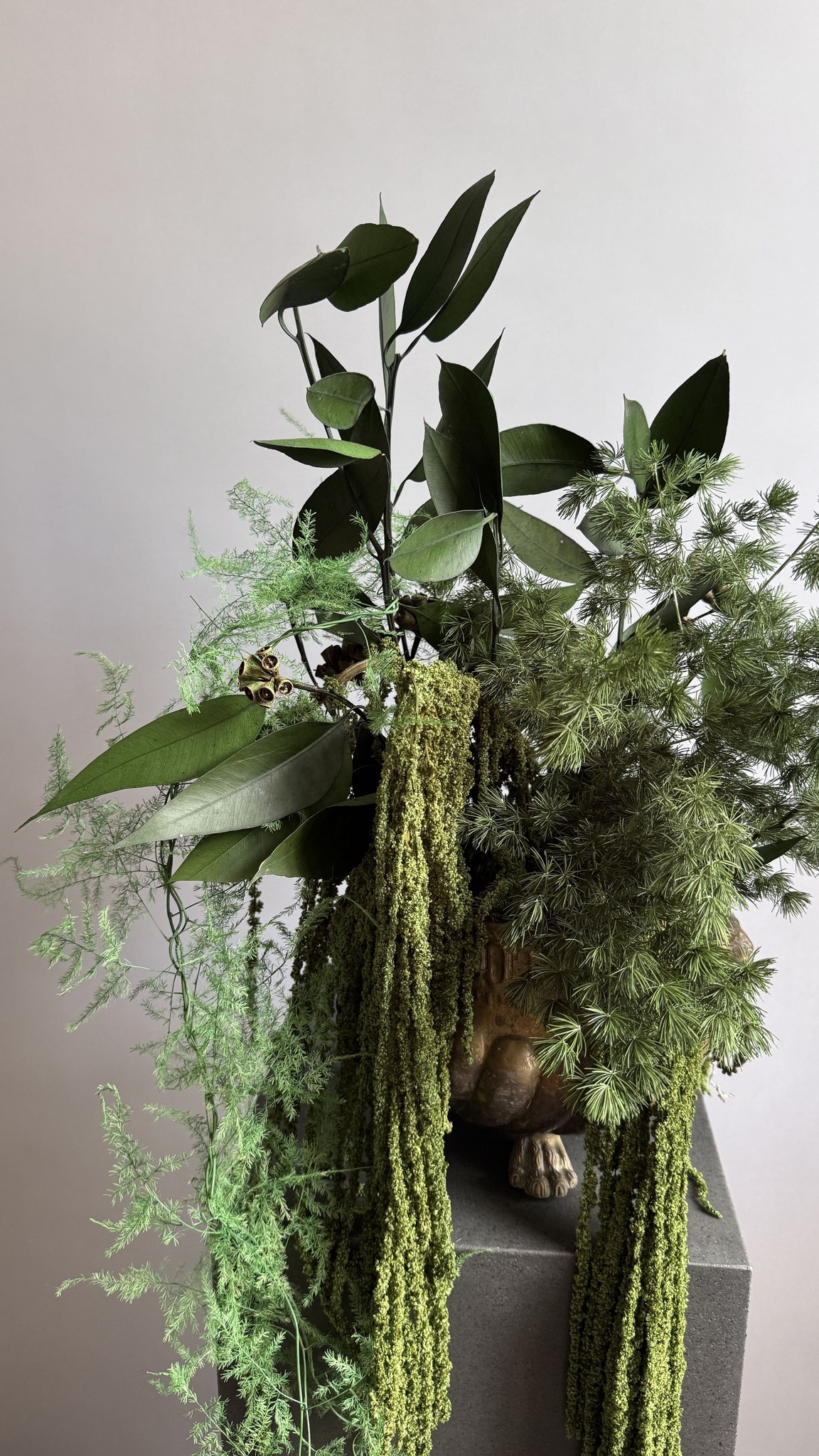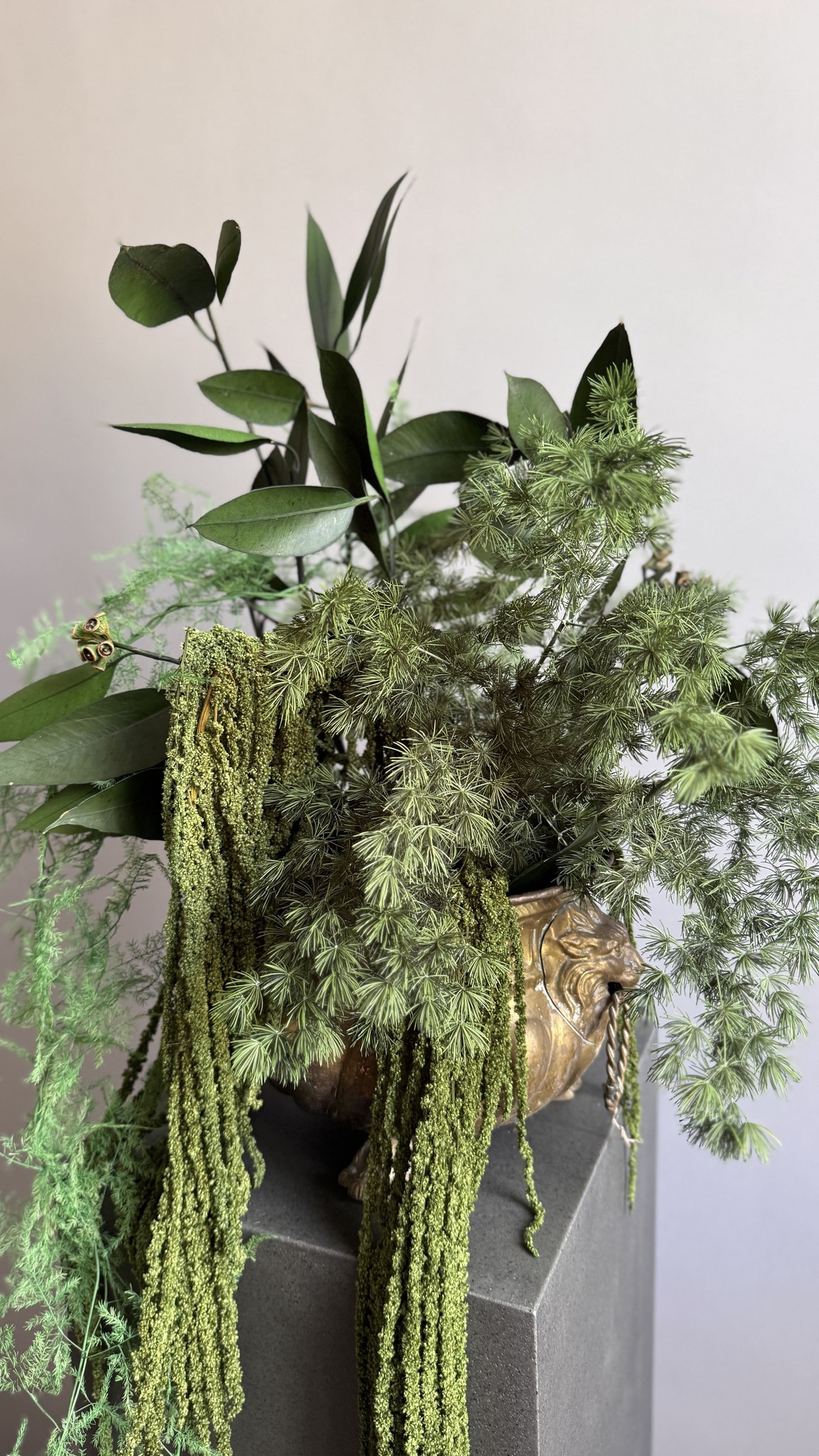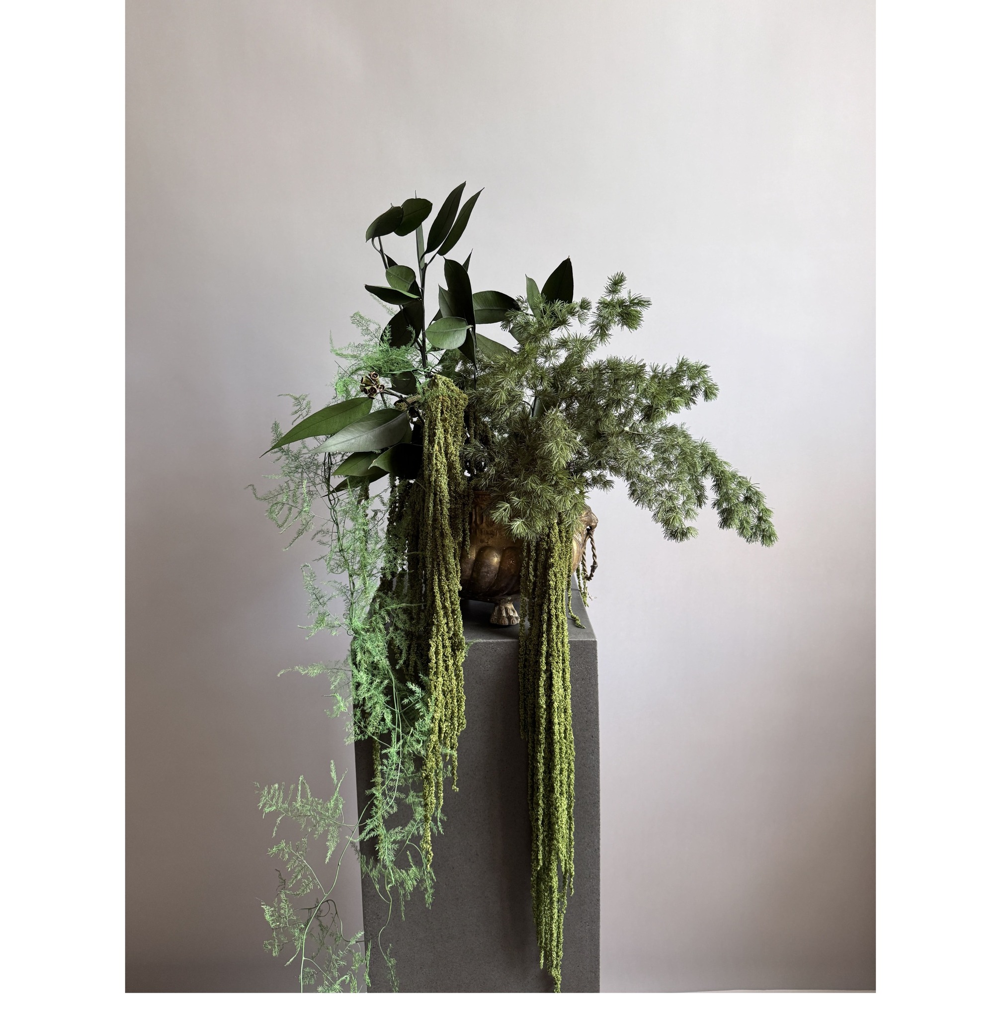 Состав: амарант темно-зеленый, аспарагус натурально-зеленый, аспарагус пернистый зеленый, гликосмис зеленый, мох зеленый.