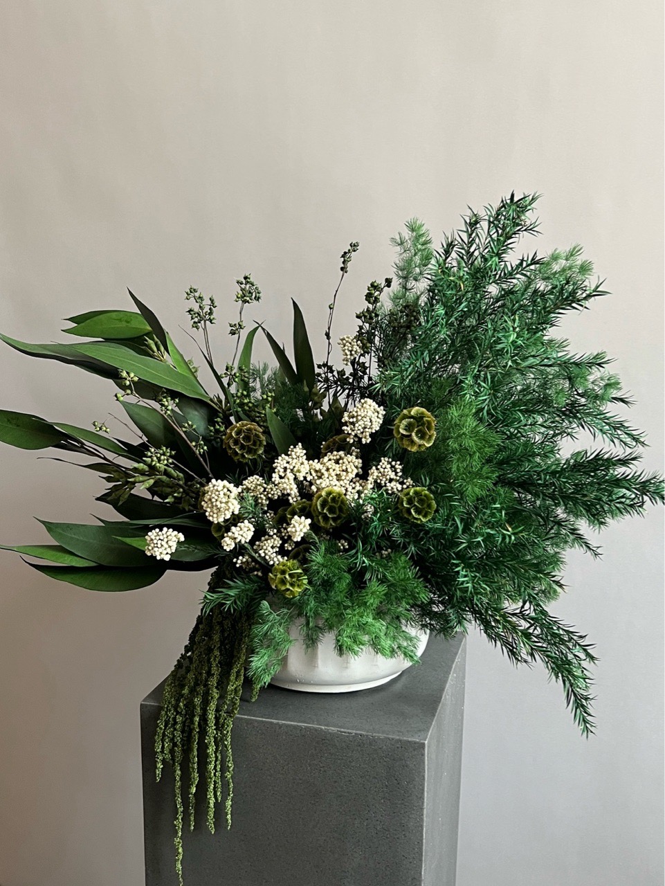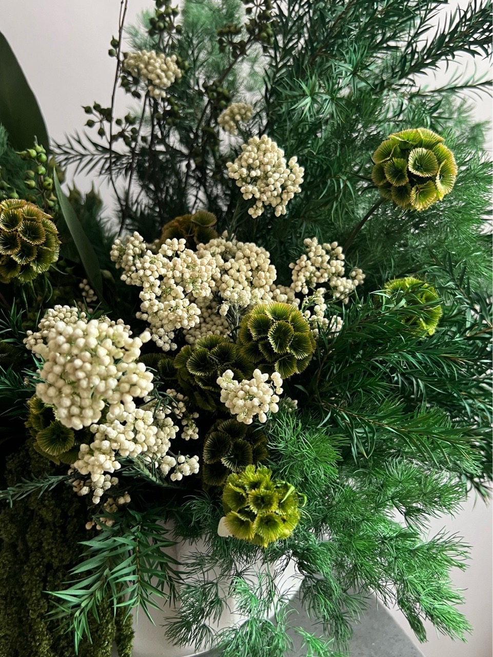 Состав: плоды эвкалипта, чайное дерево, амарант, скабиоза, озотамнус, аспарагус, гликосмис, кашпо